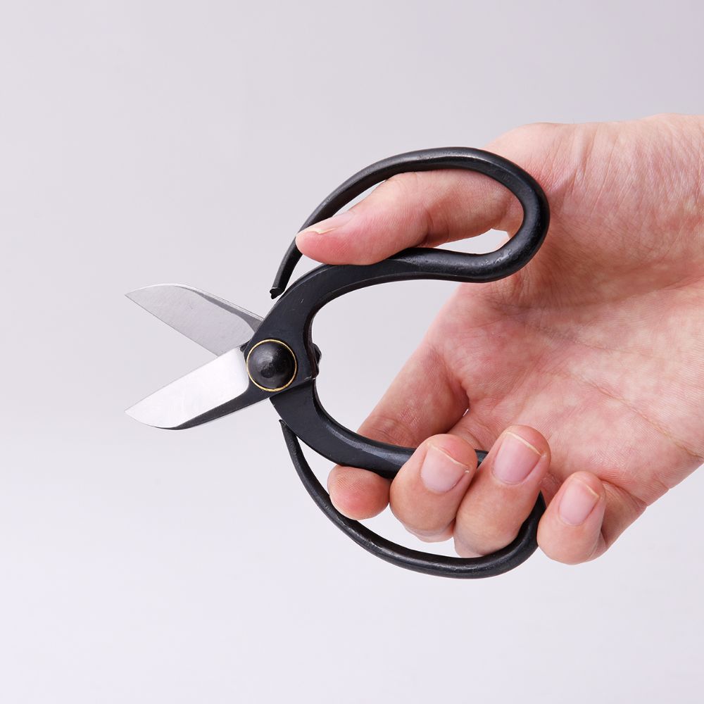盆栽などの細めの枝や葉、新芽のお手入れに使える盆栽鋏。厚みと幅を細身に仕上げ、軽量で取り回しの良い鋏です。大きく滑らかなラインの持ち手は、疲れにくい形状になっています。